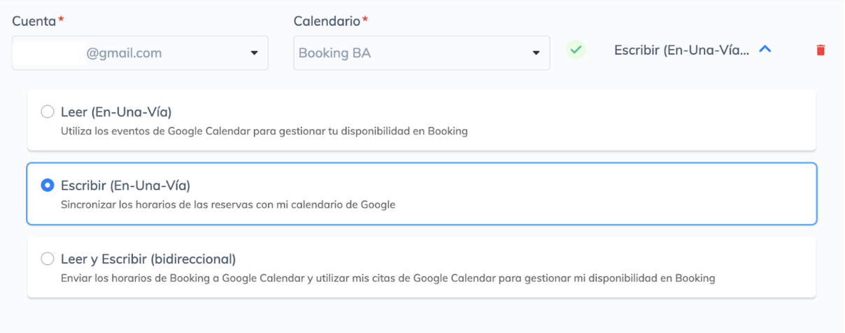 La herramienta Booking ofrece integración directa con Google Calendar, lo que permite compartir información entre ambos sistemas. Utilizando esta opción en el área de ?automatización? de la configuración del calendario en Booking, puedes elegir entre tres formas de compartir: