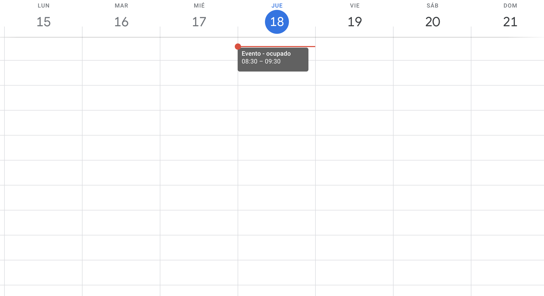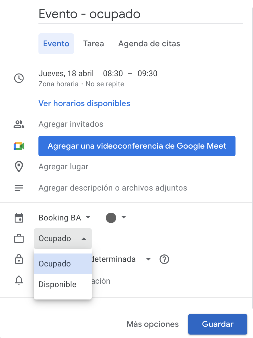 Evento con estado "ocupado" en Google Calendar.
